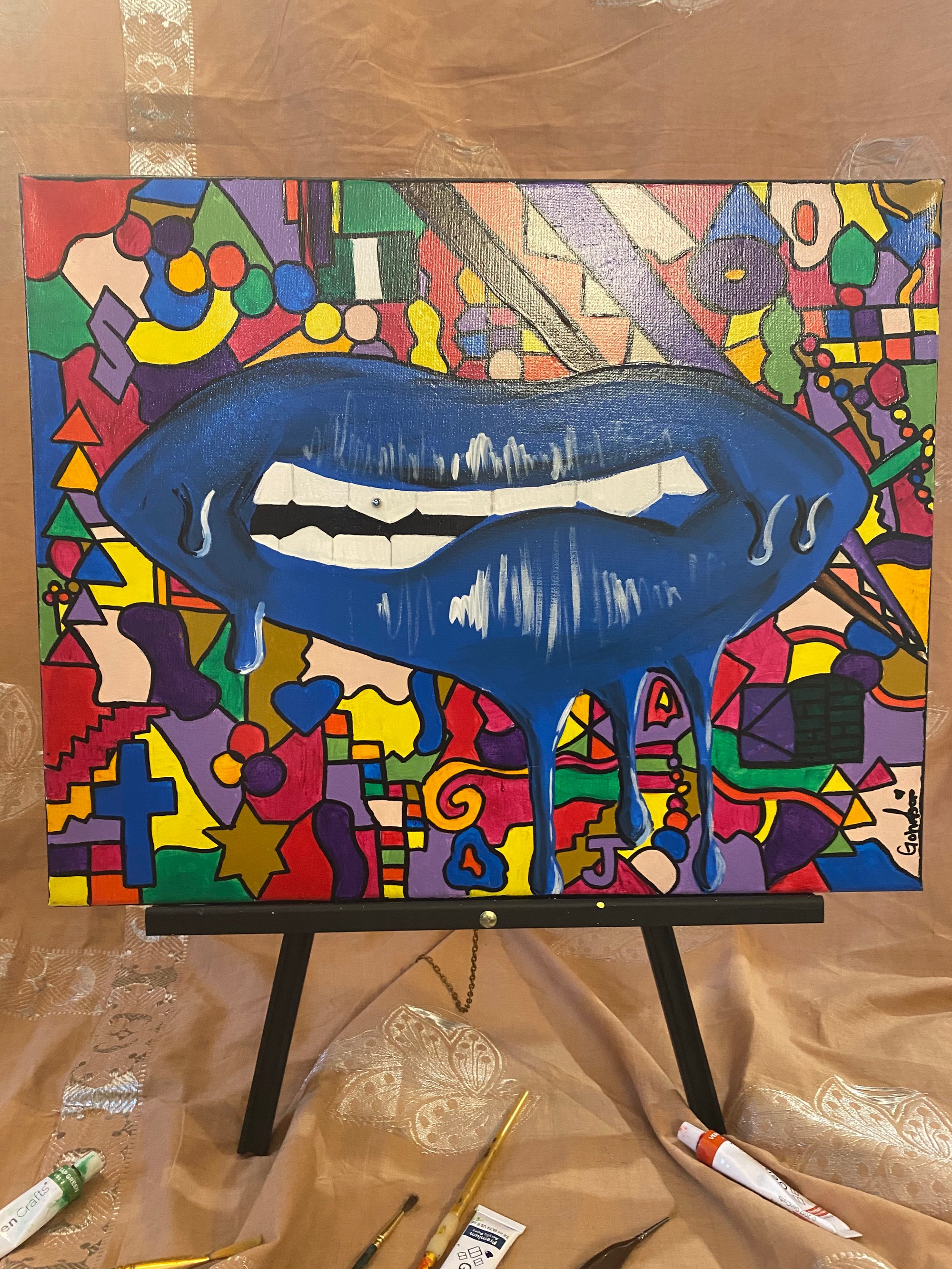 16 x 20 canvas acrylic with a gloss varnish finish and added tooth stud